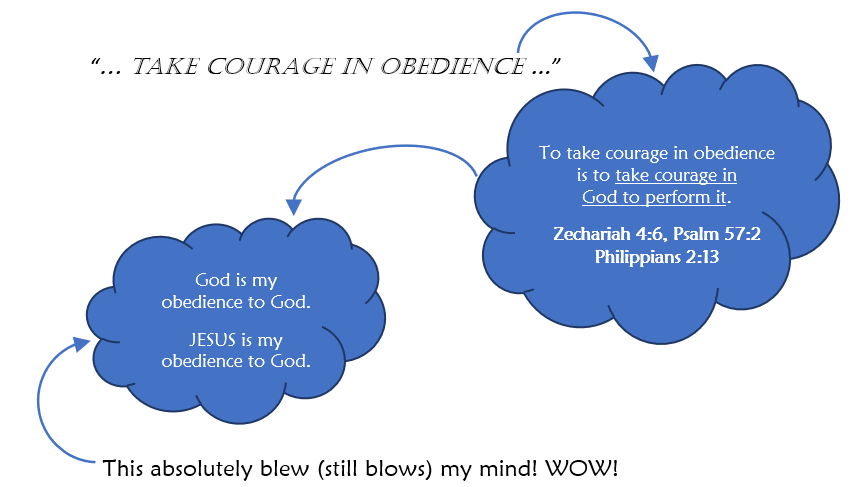 In other words Mark 5:36B is saying: take courage in obedience (in all that Jesus is and all that He has done – in the finished work of Christ: Ephesians 2:1-10).