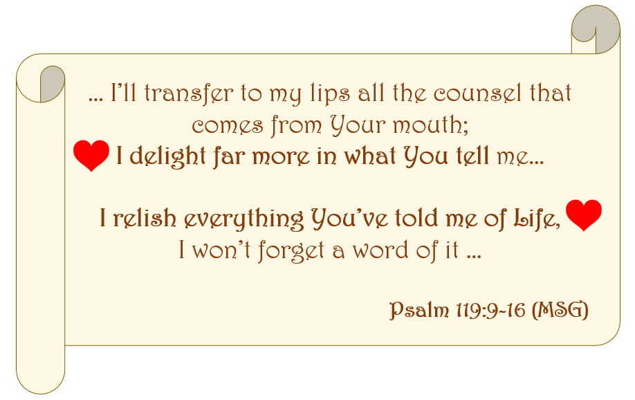 Word of God, I love You … enable me to love you MORE (with my entire being). Be my unfeigned desire. You are the voice of God’s love for and to me. By Your Spirit, enable me to treasure You more than my next breath … fix my eyes on You.