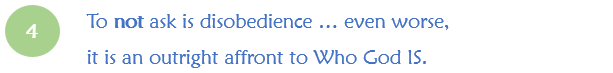 Inversely, when we don’t ask we don’t present Him with containers to pour into … we don’t let Him be God. While we may not mean to, what we tell God by not asking is: Don’t be God. This at best is rude … at worst, it is anti-God! SeLaH