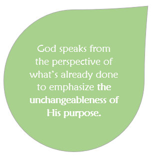 Before going down a rabbit hole trying to decipher a mystery that my natural mind can NOT even begin to compute, the Holy Spirit stepped in π₯°. He revealed to me that God speaks from the perspective of what’s already done, indicating that His promises can NOT be undone.