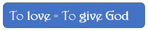 In order to give God, one must first have God. To have God, one must first RECEIVE God. It is important to note that being given a thing is NOT equal to receiving what was given. God loving us is NOT the same as us being loved by God– think of it as a two-sided coin.