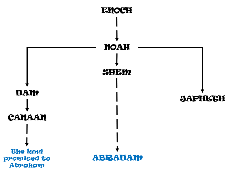 In praying that Canaan will be a slave to Shem, Noah indeed prayed that Shem will own Canaan (a slave owner owns the slave) – this very prayer translates into the same eternal promise that God unrelentingly commits Himself to (even now). Let me quickly explain with a family tree …