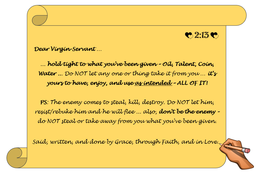 RE: Matthew 25:1-13– Enabled by the HolySpirit, I’ve come to understand that: