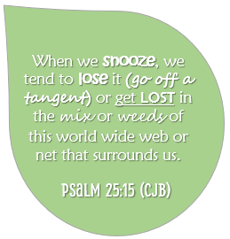 When we temporarily take our face or gaze off God, we snooze – this is an inactive, non-responsive, or sleepy state. When this happens, we get lost: we get where we are NOT meant to be. Don’t be a Snoozer-Loser πŸ™‚. By God’s Grace, be a Finder-Keeper πŸ™‚.